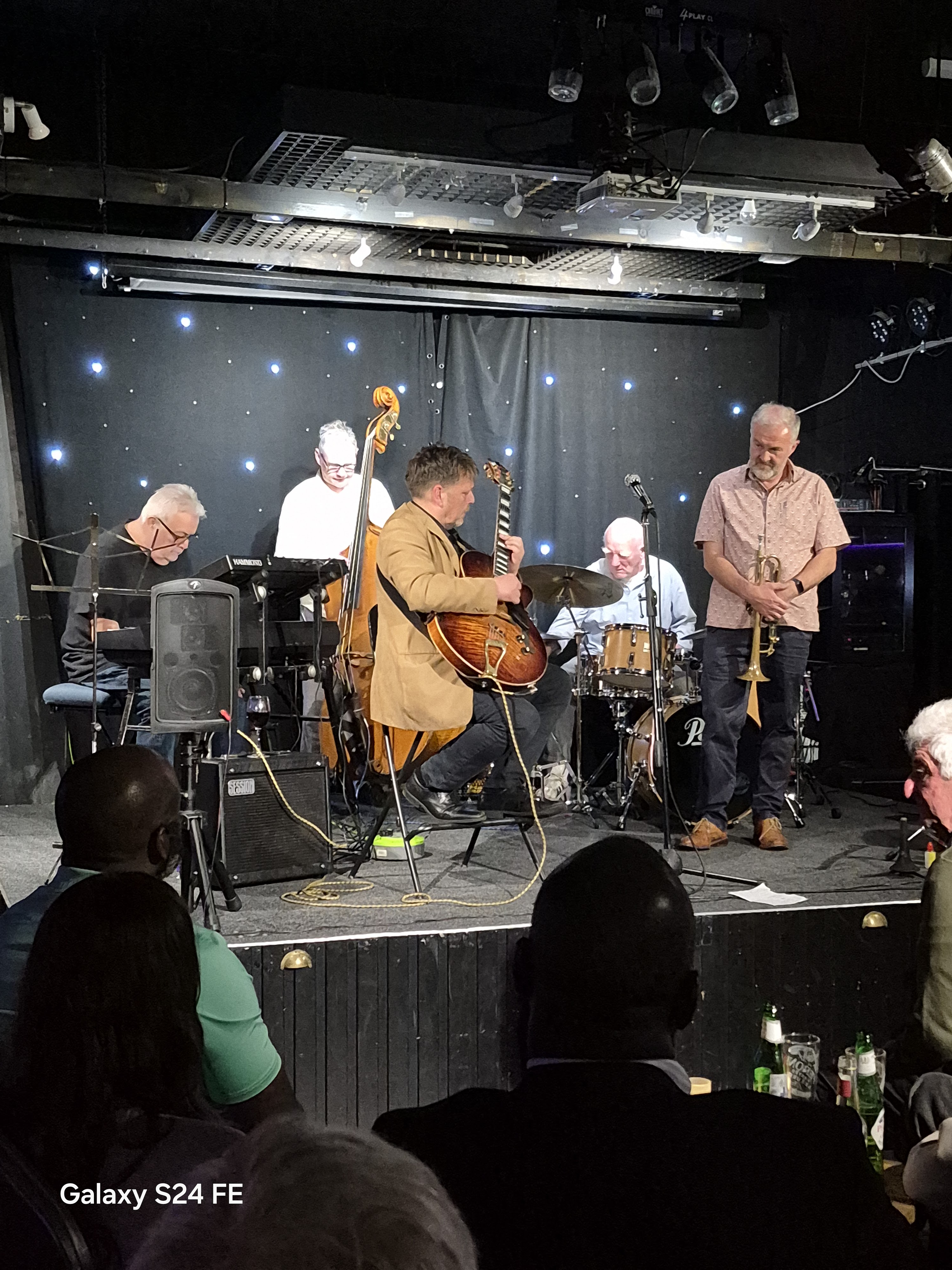 Firstly, a massive thank you to Nigel Price (guitar), Ronnie Fenn (drums), Julian Bury (double bass), Bob Haddrell (keys) ,and Gary Wood (trumpet), for the most wonderful evening of music. The Theatre Bar was buzzing. The playing was totally exquisite. To quote Ronnie “It’d be hard to top that!”